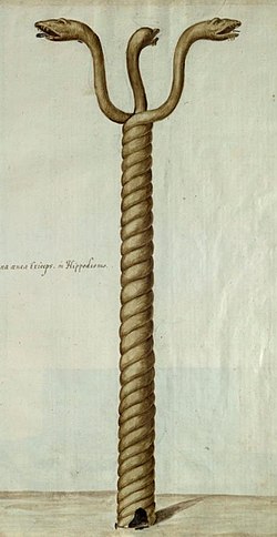 The originally 8 metre high column was intact till the end of the 17th century. One of the heads is on display in the Istanbul Archaeological Museum.